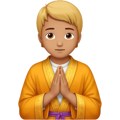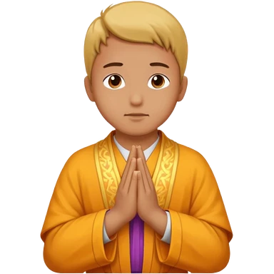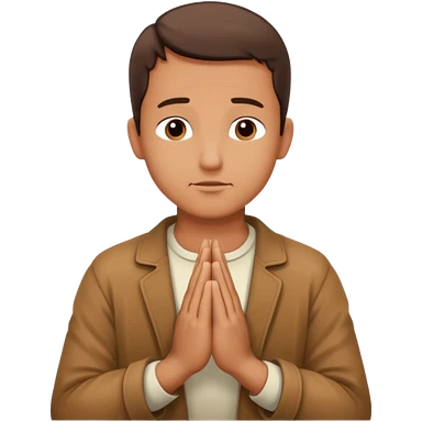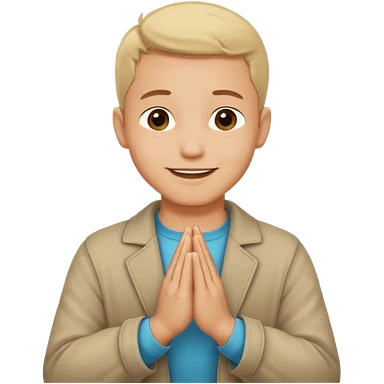 White boy with black hair doing namaste emoji