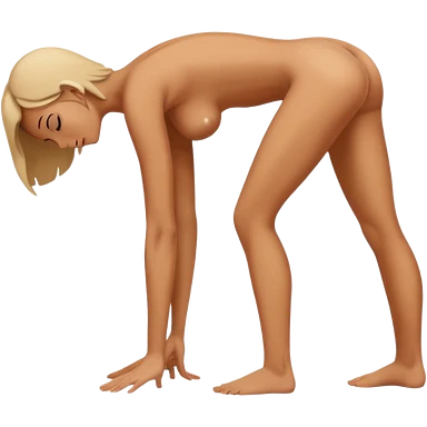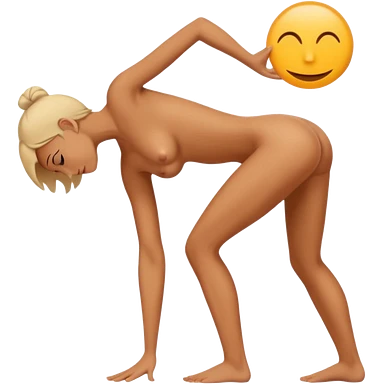 women bending over, full body naked. Man standing behind her making a squinting face, full body naked. emoji