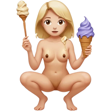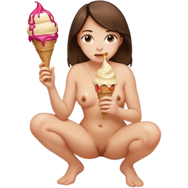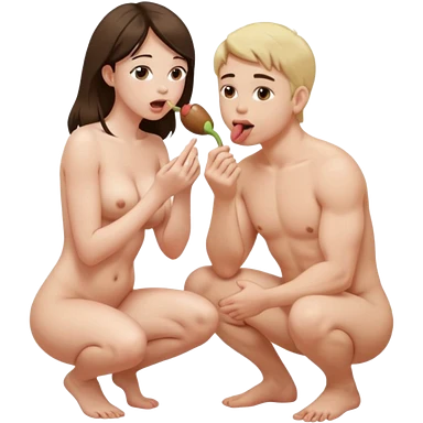 Women is squatting full body naked, man is in front of her licking her clit, he is also naked emoji