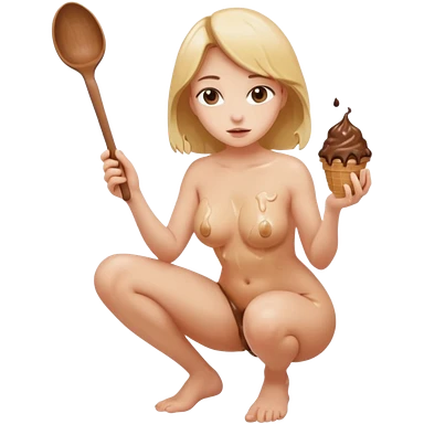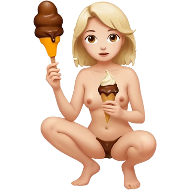 women squatting, full body naked showing poop coming out of her butthole emoji