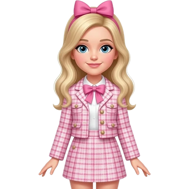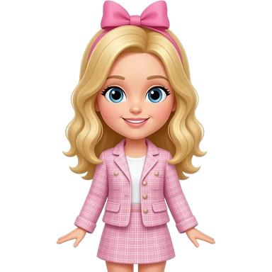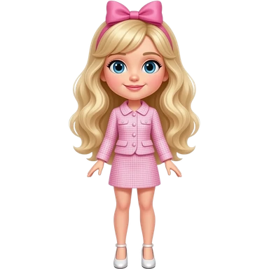 Full body blonde girl with a pink bow wearing a light pink tweed jacket and skirt set emoji