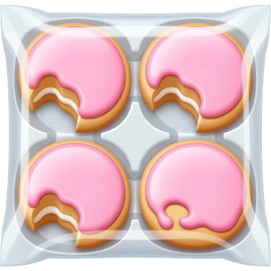 6 sugar cookies with pink frosting packaged in a transparent plastic box emoji