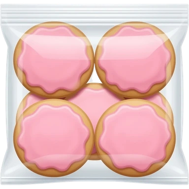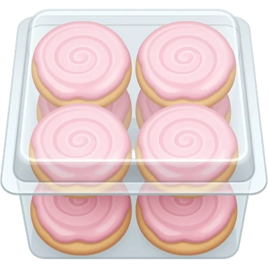 6 sugar cookies with pink frosting packaged in a plastic transparent container emoji