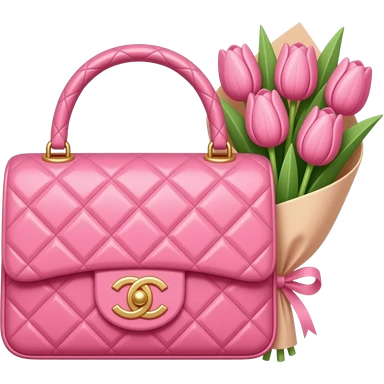 Pink Chanel bag with a pink tulip bouquet next to it emoji