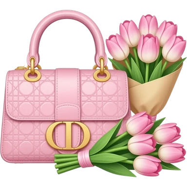 Pink Lady Dior bag with a pink tulip bouquet next to it emoji