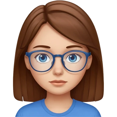 a black haired girl with blue eyes and glasses with blue shirt and long hair and gold glasses emoji