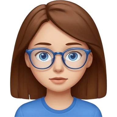a black haired girl with blue eyes and glasses with blue shirt and long hair and gold glasses kid emoji