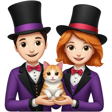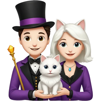 magician couple and their pet cat emoji