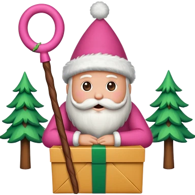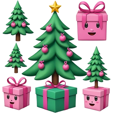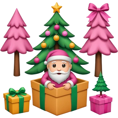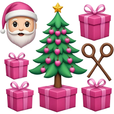 emojis estilo pixar de la cara de santa, arbolito rosa, reno, lazo coquet,bastones rosa, caja de regalo rosa, arbolito verde con bambalinas rosa emoji
