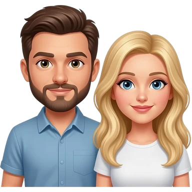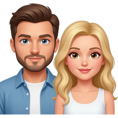 Couple, Brown hair man with goatee and grey eyes and blonde woman with beautiful brown eyes emoji