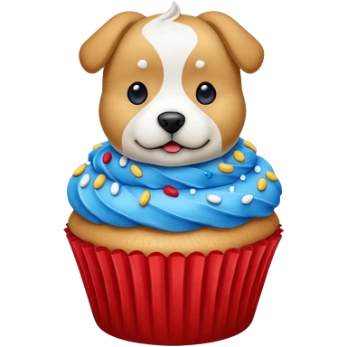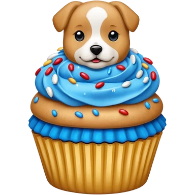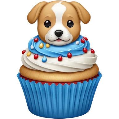 Cupcake with a dog and with gloden and silver and blue and red icing emoji