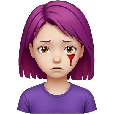Young girl with red, damaged, and unattractive hair, wearing a purple T-shirt, with a sad face. emoji