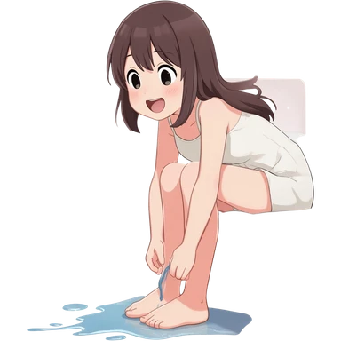 Anime girl nude giggling and peeing emoji