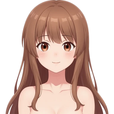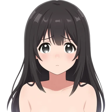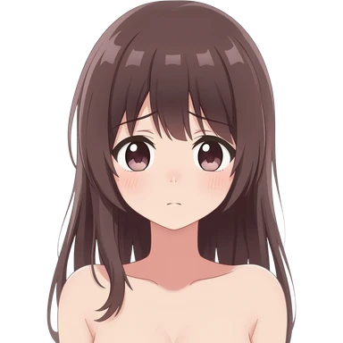 Anime girl long hair embarrassed showing her completely nude body emoji