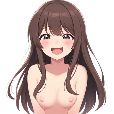 Anime girl long hair pussywhole body nude blushing and giggle emoji