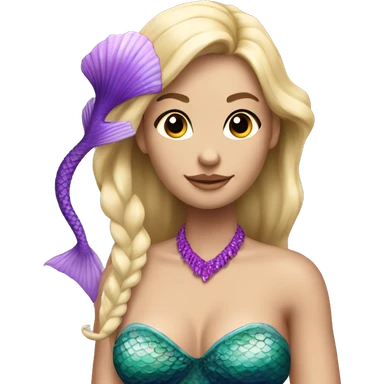 Blonde hair mermaid with purple fish tail and seashell bra emoji