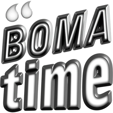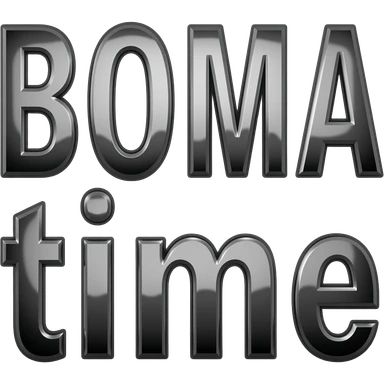 Black chrome text saying "BOMA time", the words in top each other emoji
