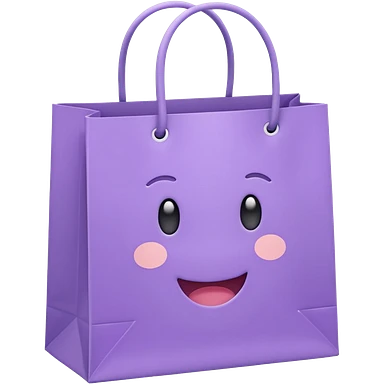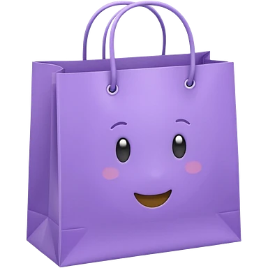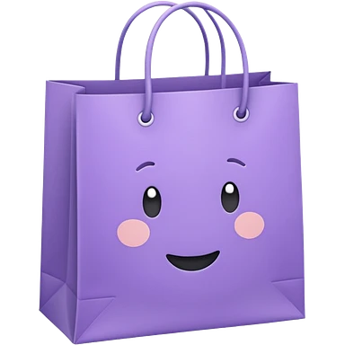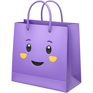 A cute emoji-style illustration of a purple paper shopping bag, pastel purple color, rounded shape, simple clean lines, kawaii style, soft shading, minimal details, centered composition, transparent background emoji