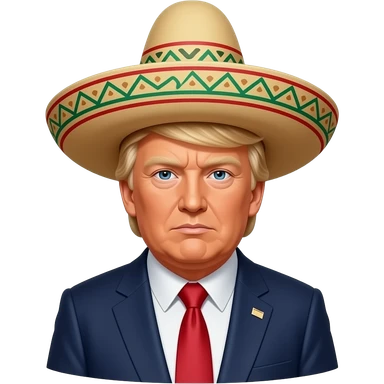Be A very Orangish, media stereotypical Donald Trump in the Apple IOS simple style, wearing Stereotypical and ornate Mexican clothing And hat emoji