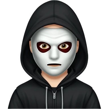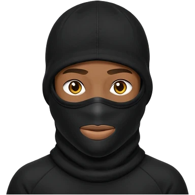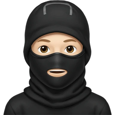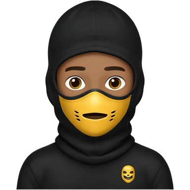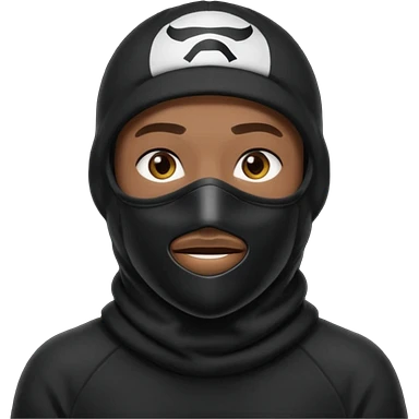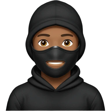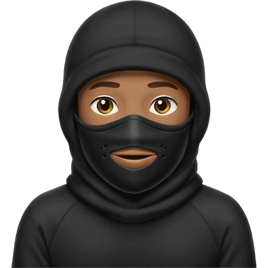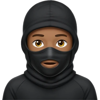 Crie um homem de blusa peta e capuz preto, balaclava preta, boné preto, COM A BALACLAVA COBRINDO A BOCA emoji