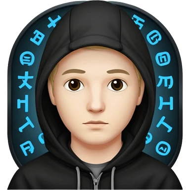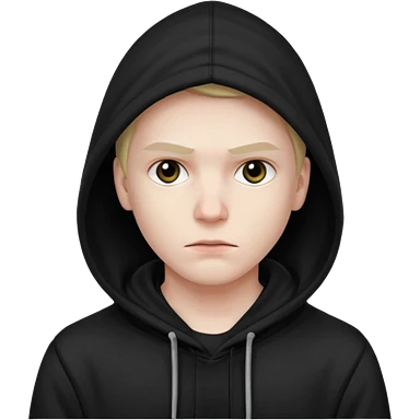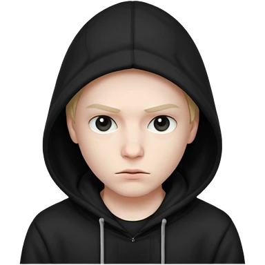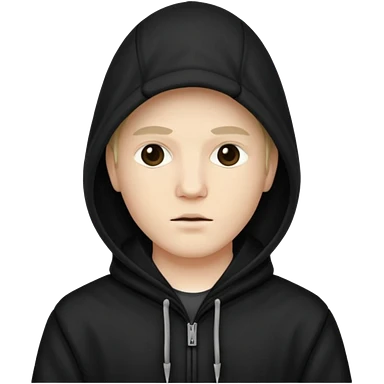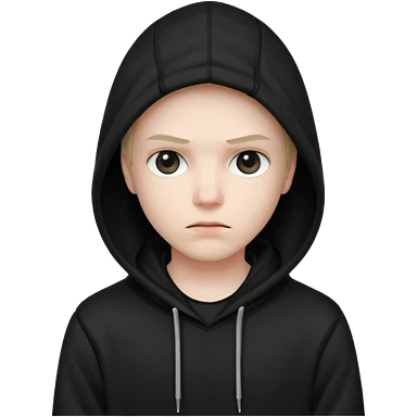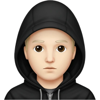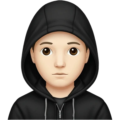Crie um homem de blusa preta e capuz preto, balaclava preta, boné preto emoji