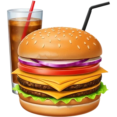 a burger and a drink next to it emoji