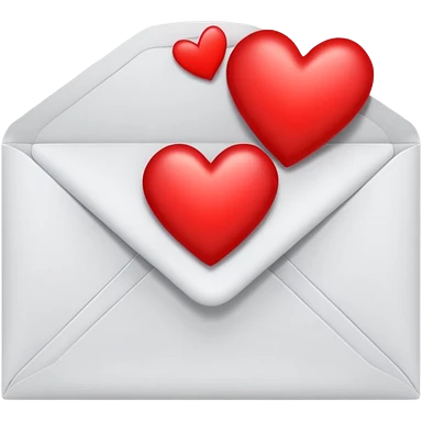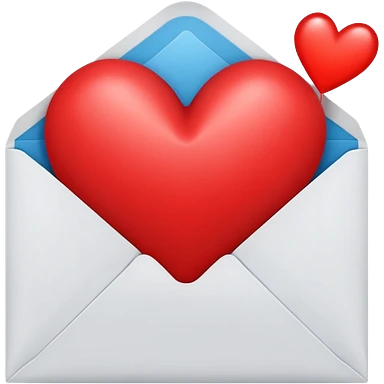 envelope with a heart sticking out of it in y2k style, the heart is bright reddish pink and glossy emoji