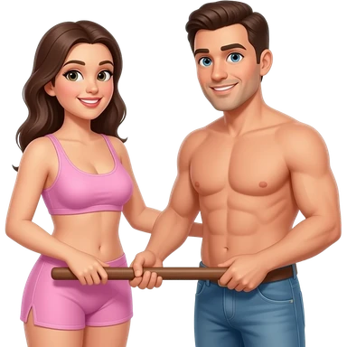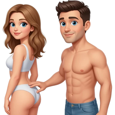 Homem pelado aparecendo o corpo inteiro do lado de uma mulher pelada rebolando de costas para elep ele emoji