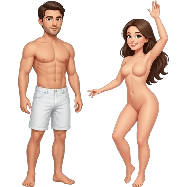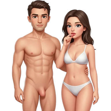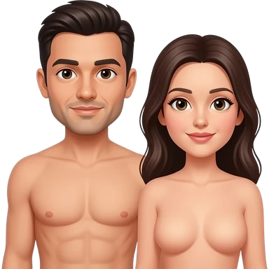 Homem pelado aparecendo o corpo inteiro do lado de uma mulher pelada emoji