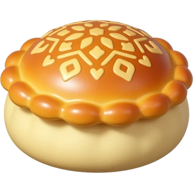 Minimal clean background. A 3D emoji-style shekerbura pastry with detailed traditional patterns on top. Golden baked color, slightly glossy surface, soft shadows. Rounded, smooth, Apple emoji style. Centered and minimal with empty space emoji