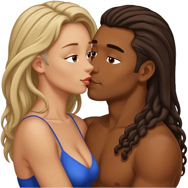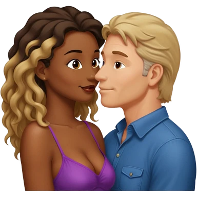 middle age blue eyed white man kissing a sexy dark skin girl curly locks emoji