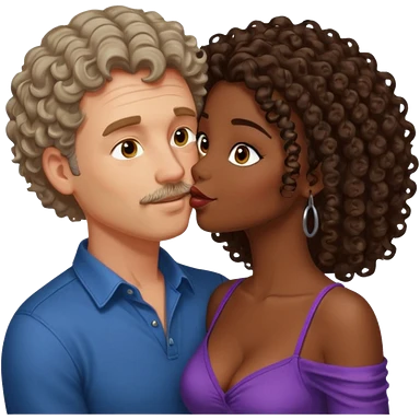 middle age white man kissing a sexy dark skin girl curly locks emoji