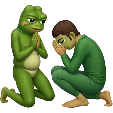 Pepe the frog kneeling and praying in front of man’s feet emoji