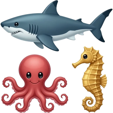 Shark, octopus, and seahorse emoji