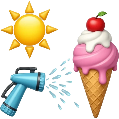 Sun, sprinkler, and ice cream emoji