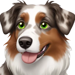 Red Merle Australian shepherd with one blue eye and one green eye emoji
