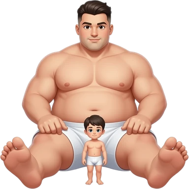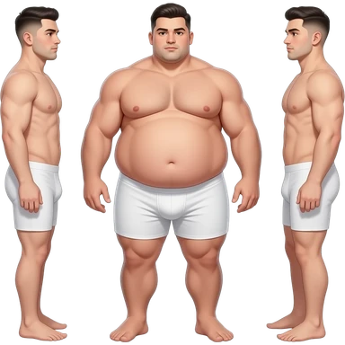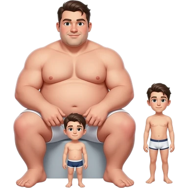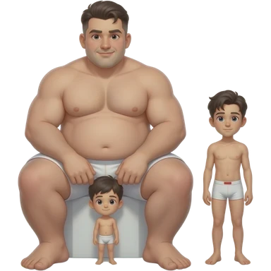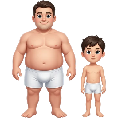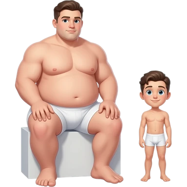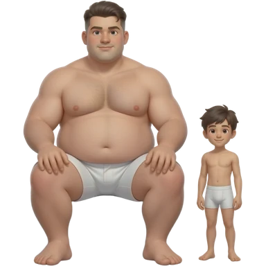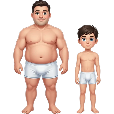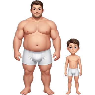 Strong tall fat boy, big dick, full body, fat, boy in white boxers, standing next to a short weak thin boy emoji