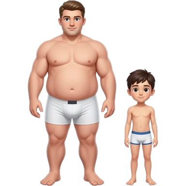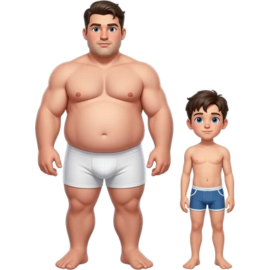 Strong tall fat boy, full body, boy in white boxers, standing next to a short weak thin boy in a shirt and jeans emoji