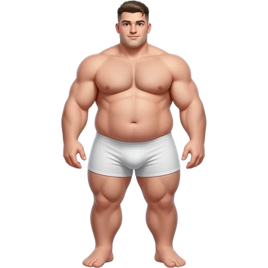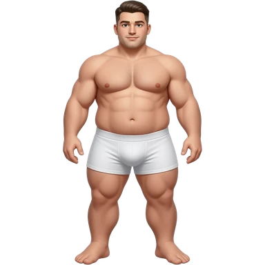Strong very tall very wide ultra very very fat teen, gigantic big dick, cool hairstyle, cool fade, large dick, large feet, large dick, full body, fat, in white boxers that make his gigantic thighs and cock look bigger,, emoji