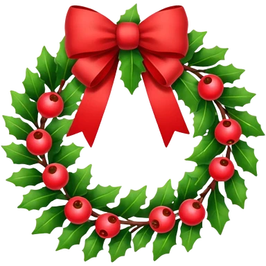Christmas wreath with red berries and red bow emoji