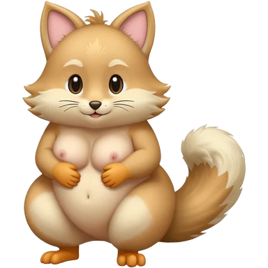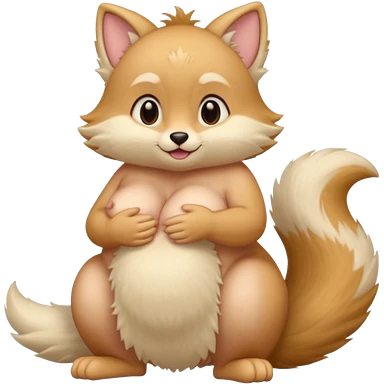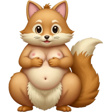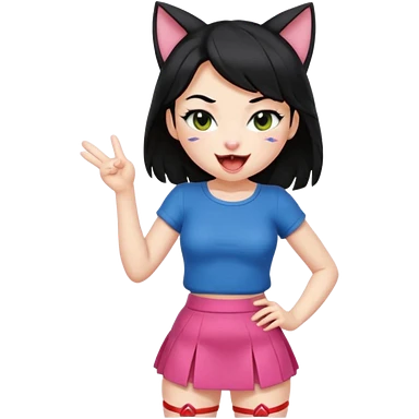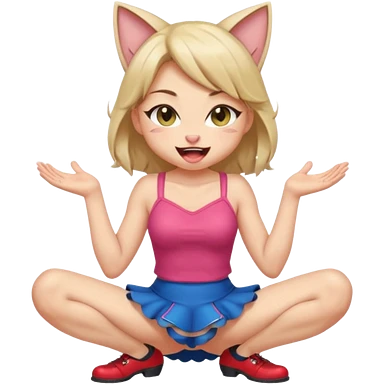 catgirl squatting and winking with her tongue out, legs apart, wearing a mini skirt bare thighs emoji