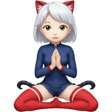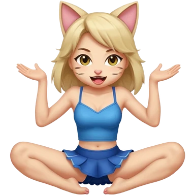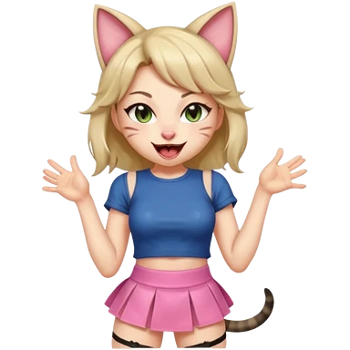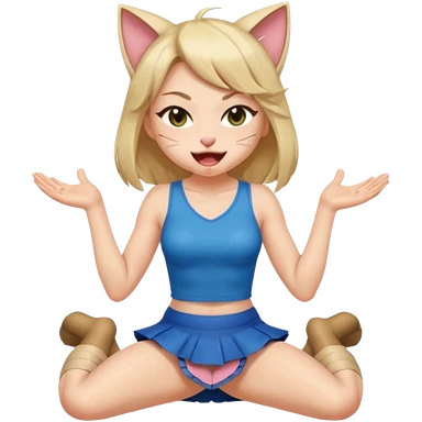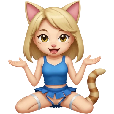 catgirl and winking with her tongue out, legs apart, wearing a mini skirt bare thighs emoji