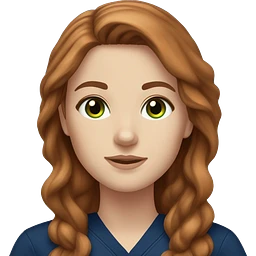 White girl fair skin, long auburn hair, green eyes, navy blue scrubs emoji