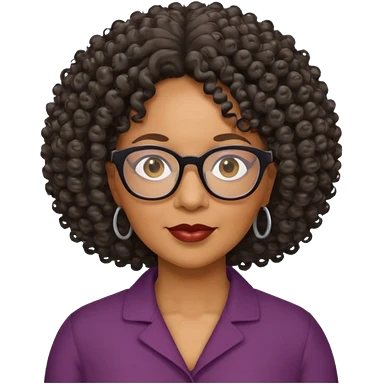 50 year old Black lady with curly hair and glasses emoji