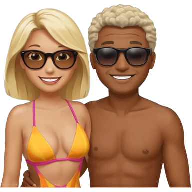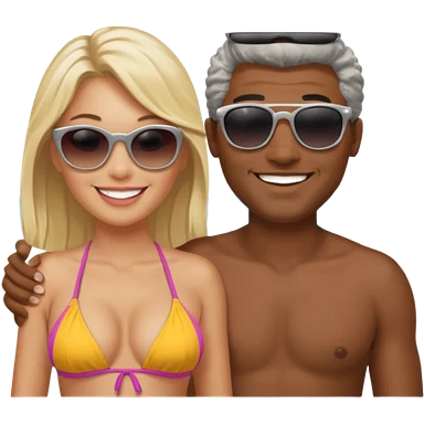 Black man with short salt n pepper hair with younger blonde both smiling on beach emoji