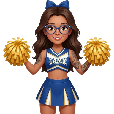 tan girl with glasses and tattoos and long hair cheerleader emoji