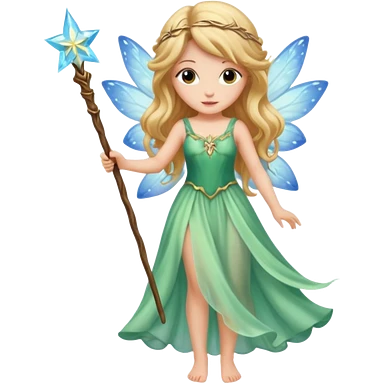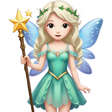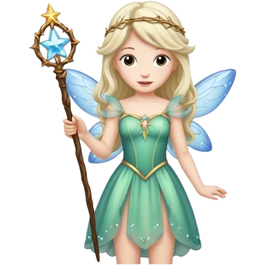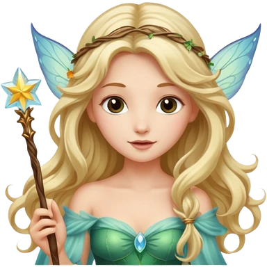 long haired fairy with normal sized eyes and a wand emoji