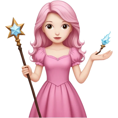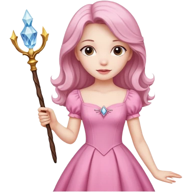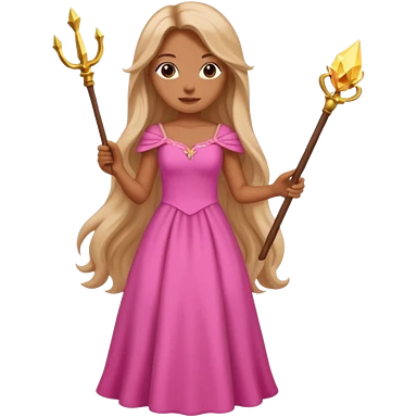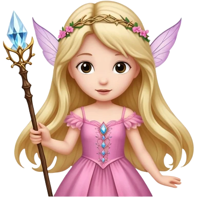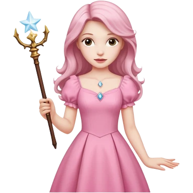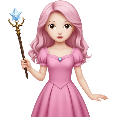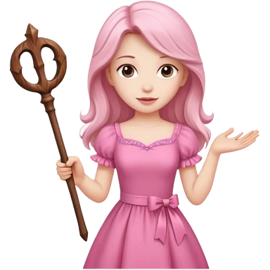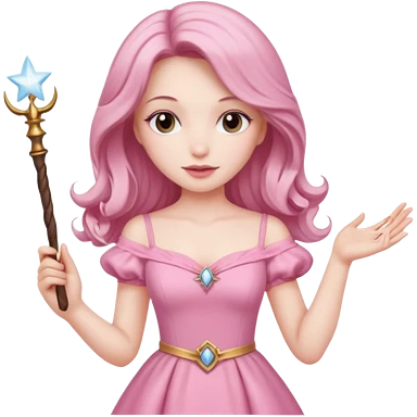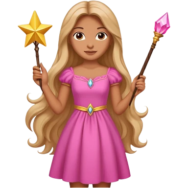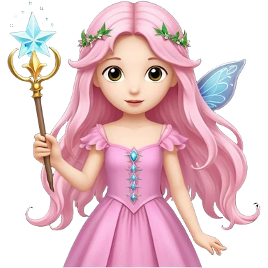 long haired fairy with small eyes, pink dress and a wand emoji