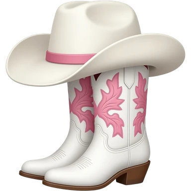 white cowgirl boots with hints of pink by white cowgirl hat with hints of pink emoji