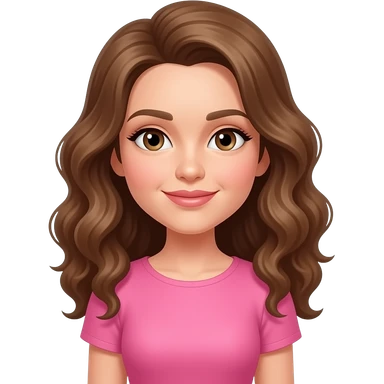 A Megan moroney emoji that is her in a pink dress with curled hair. emoji